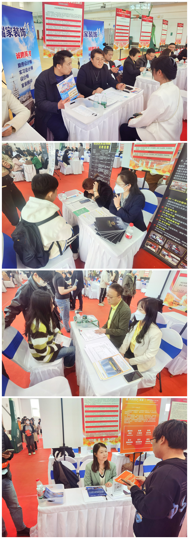 •       2023年3月31日下午,大连市室内装饰·设计行业2023年高校毕业生春季联合招聘会在大连工业大学举办。本次招聘会上,1500余名来自20所高校毕业生参加现场招聘,投递简历超 800余份。